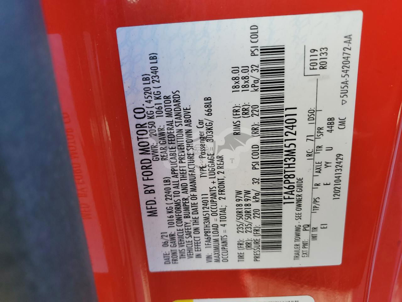 • VIN: 1FA6P8TH3M5124011