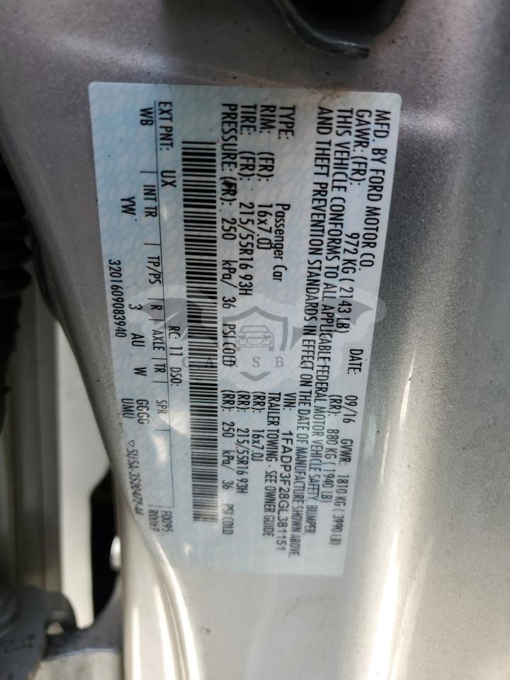 • VIN: 1FADP3F28GL381151