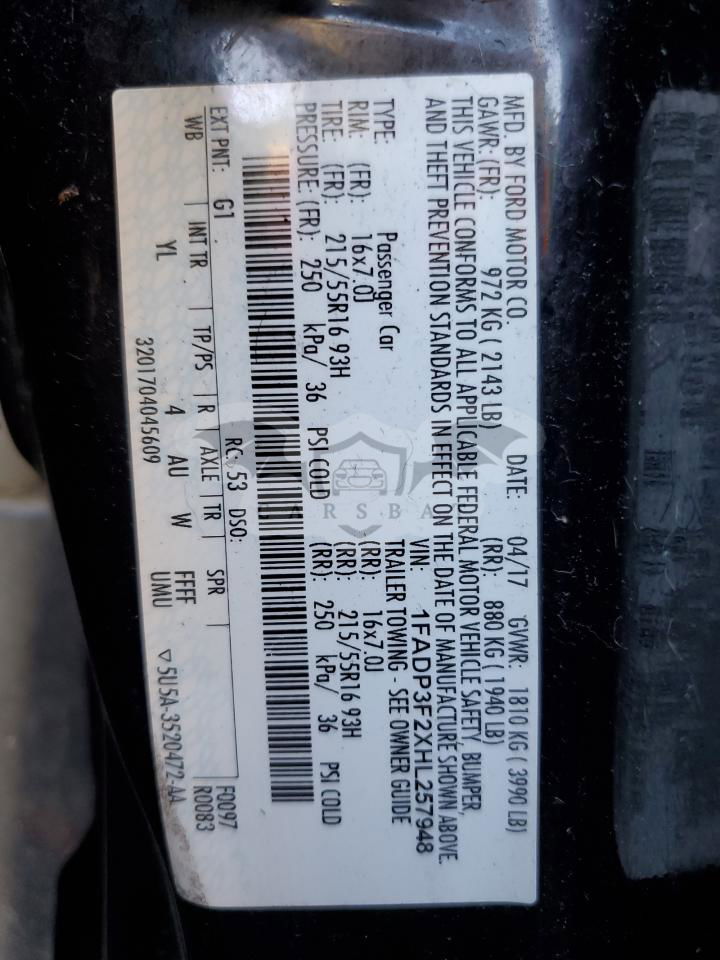 • VIN: 1FADP3F2XHL257948