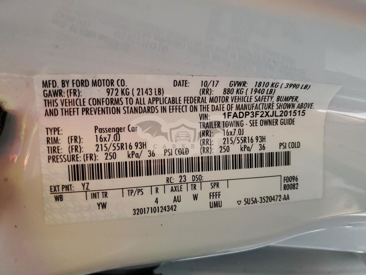 • VIN: 1FADP3F2XJL201515