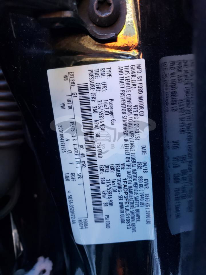 • VIN: 1FADP3FE1JL310813