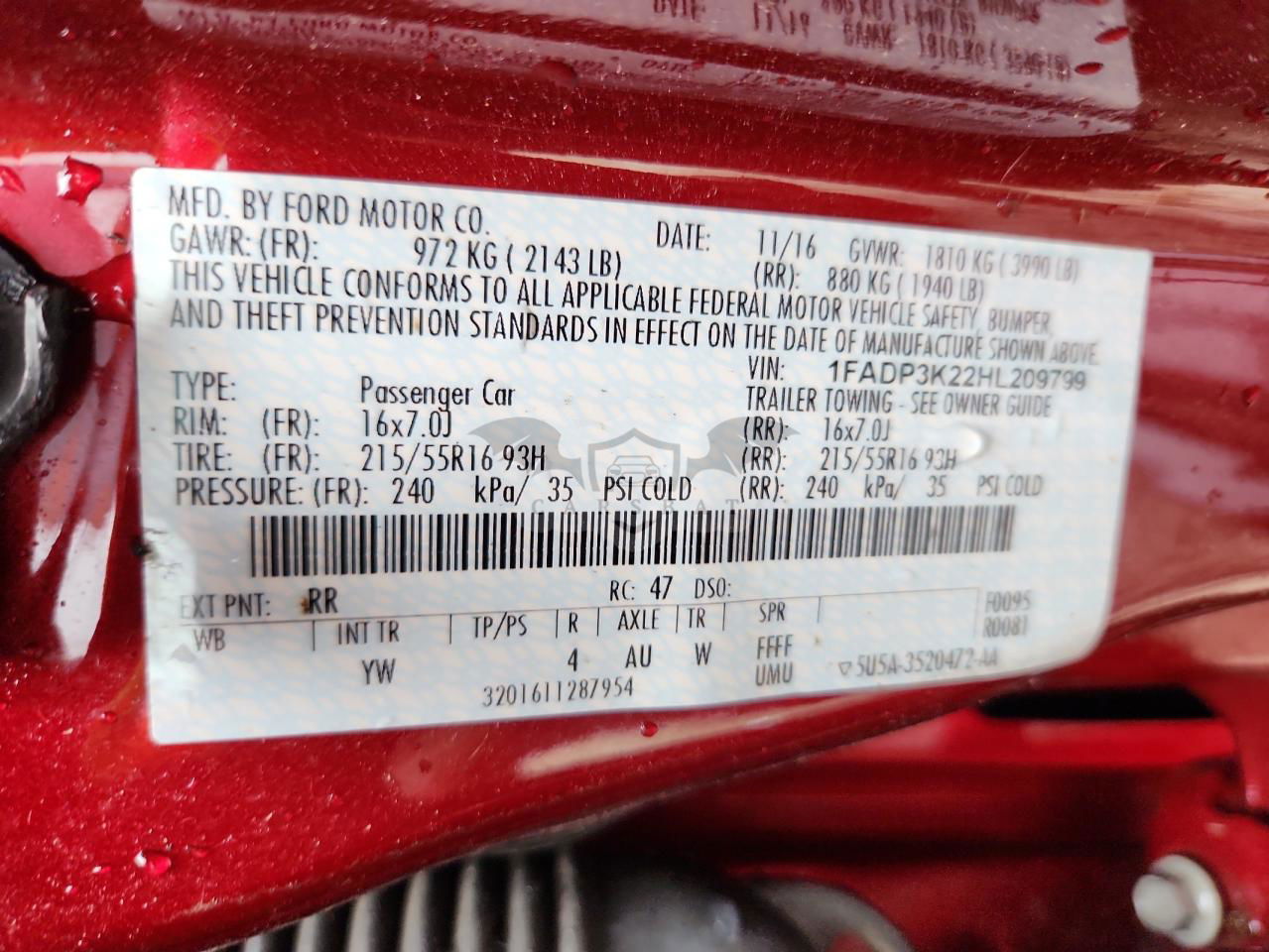 • VIN: 1FADP3K22HL209799