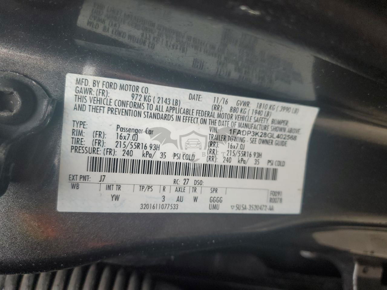 • VIN: 1FADP3K28GL402568