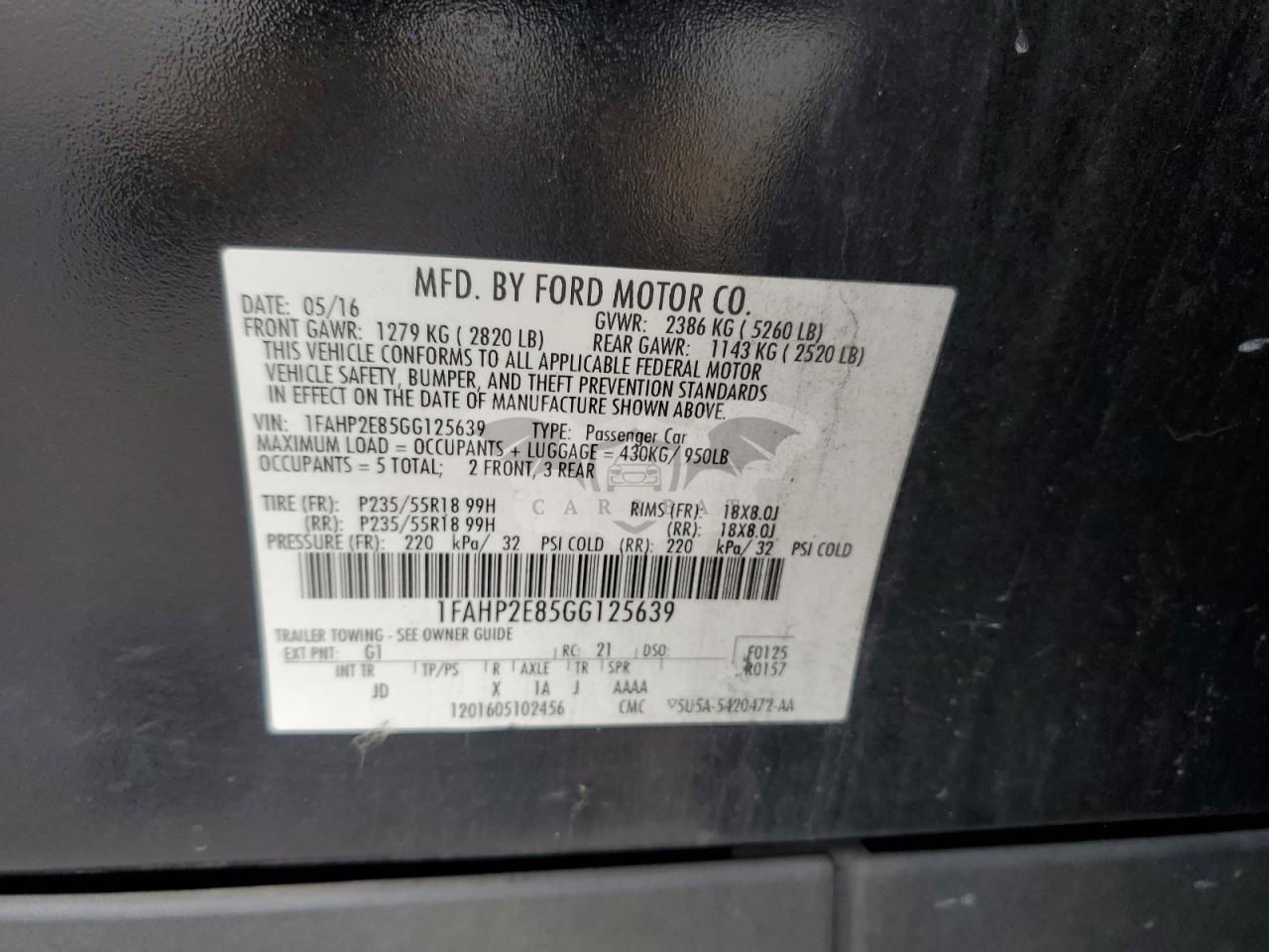 • VIN: 1FAHP2E85GG125639