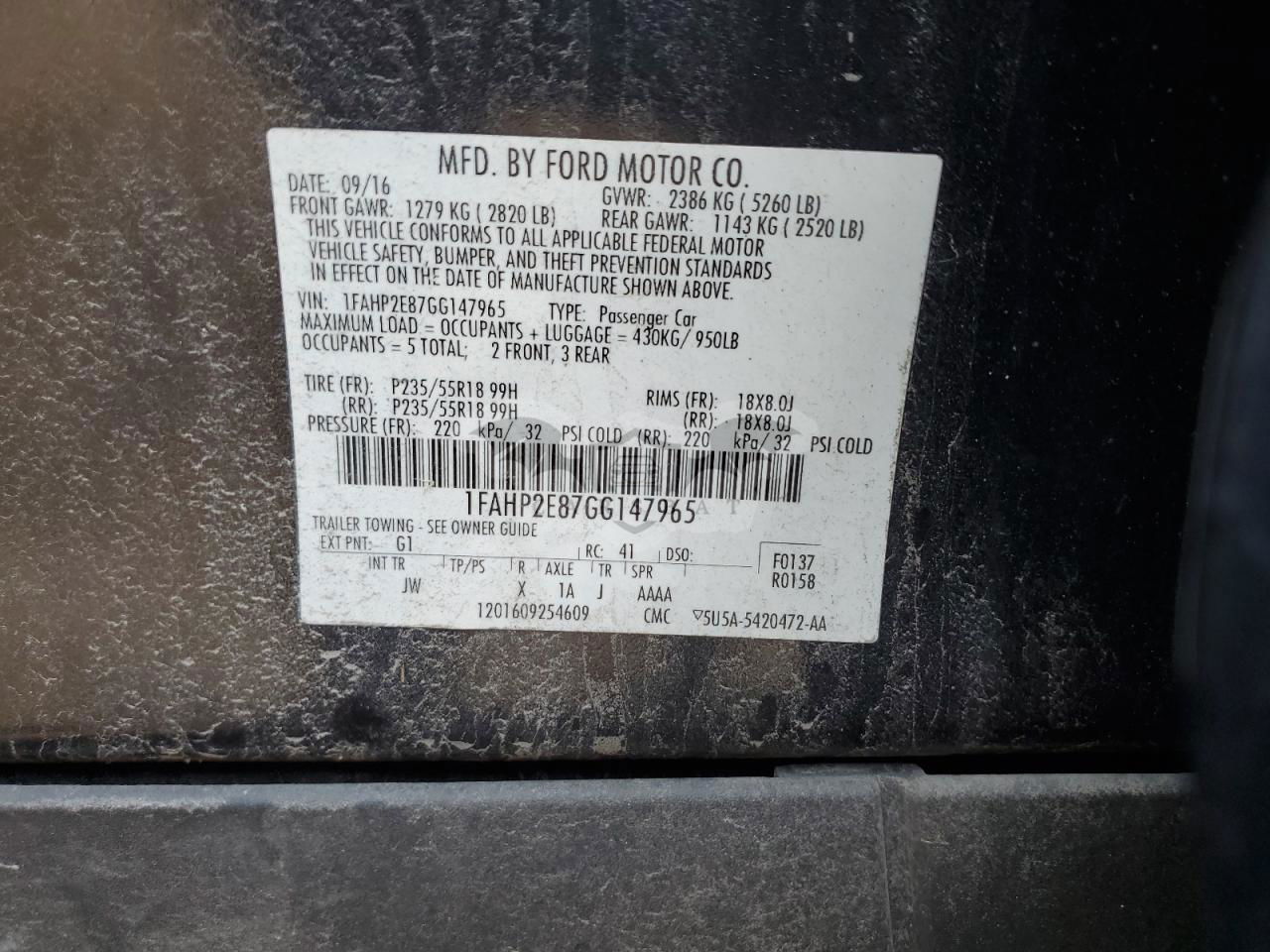 • VIN: 1FAHP2E87GG147965