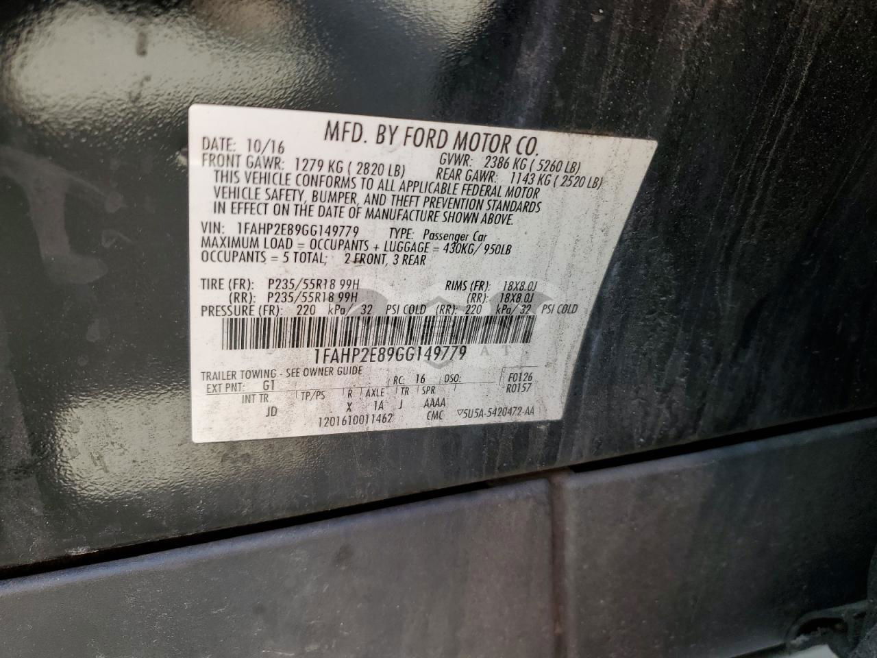 • VIN: 1FAHP2E89GG149779