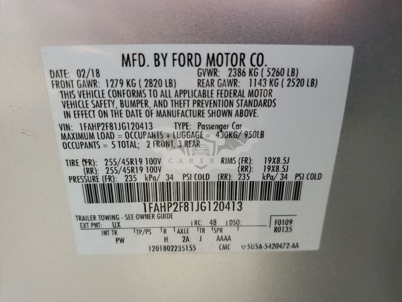 • VIN: 1FAHP2F81JG120413