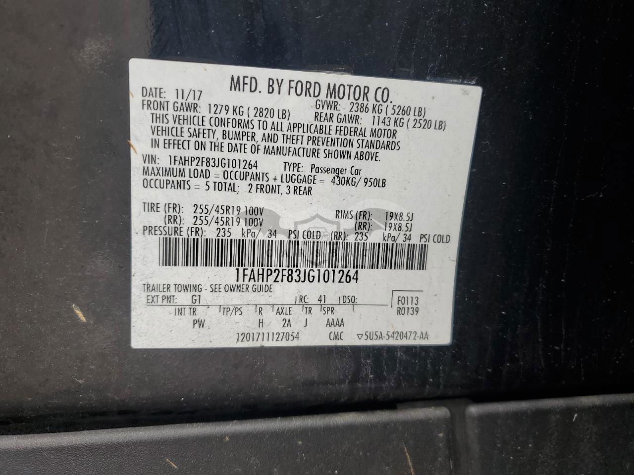 • VIN: 1FAHP2F83JG101264