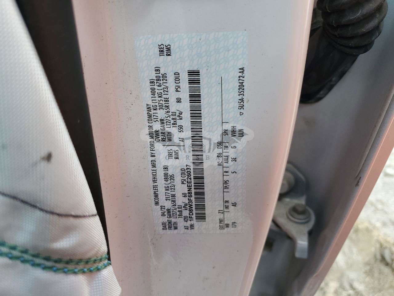 • VIN: 1FD8W3F68NEE26037