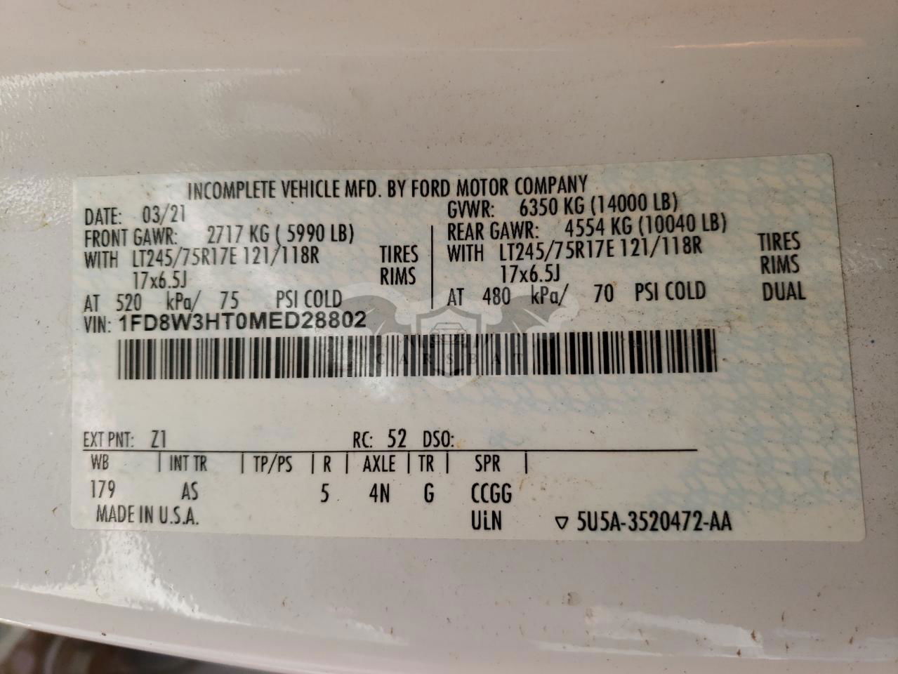 • VIN: 1FD8W3HT0MED28802