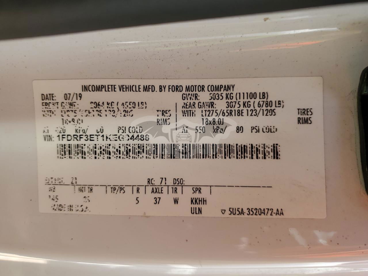 • VIN: 1FDRF3ET1KEG04488