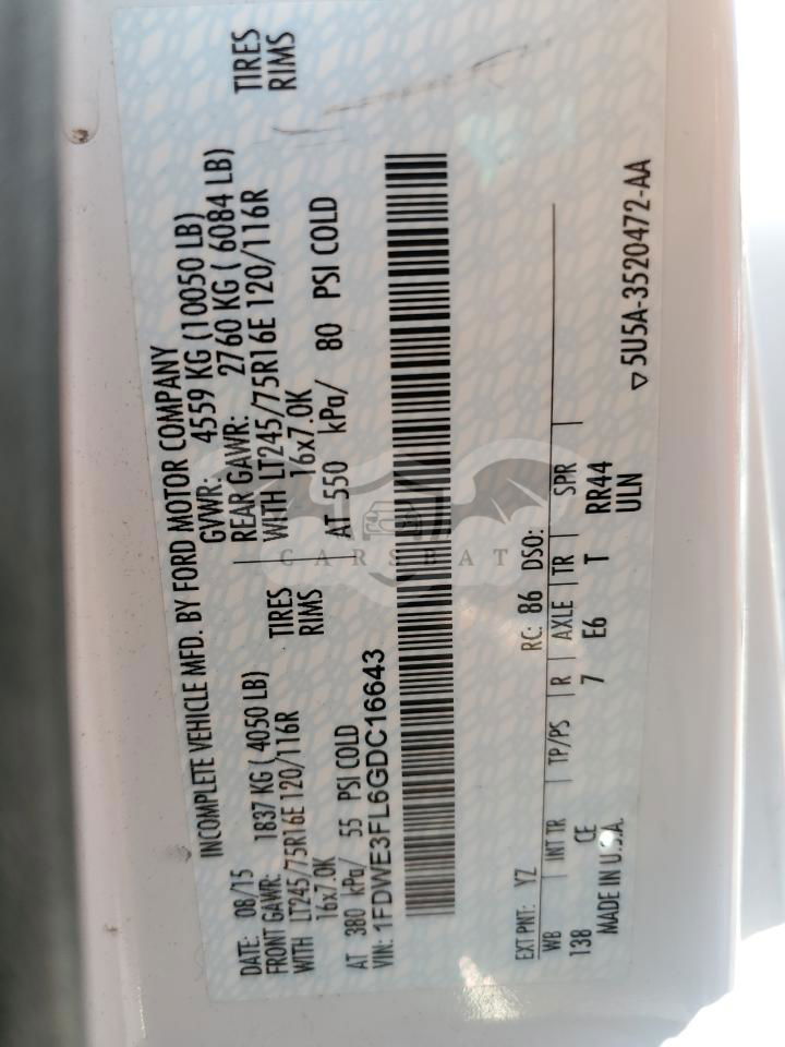 • VIN: 1FDWE3FL6GDC16643