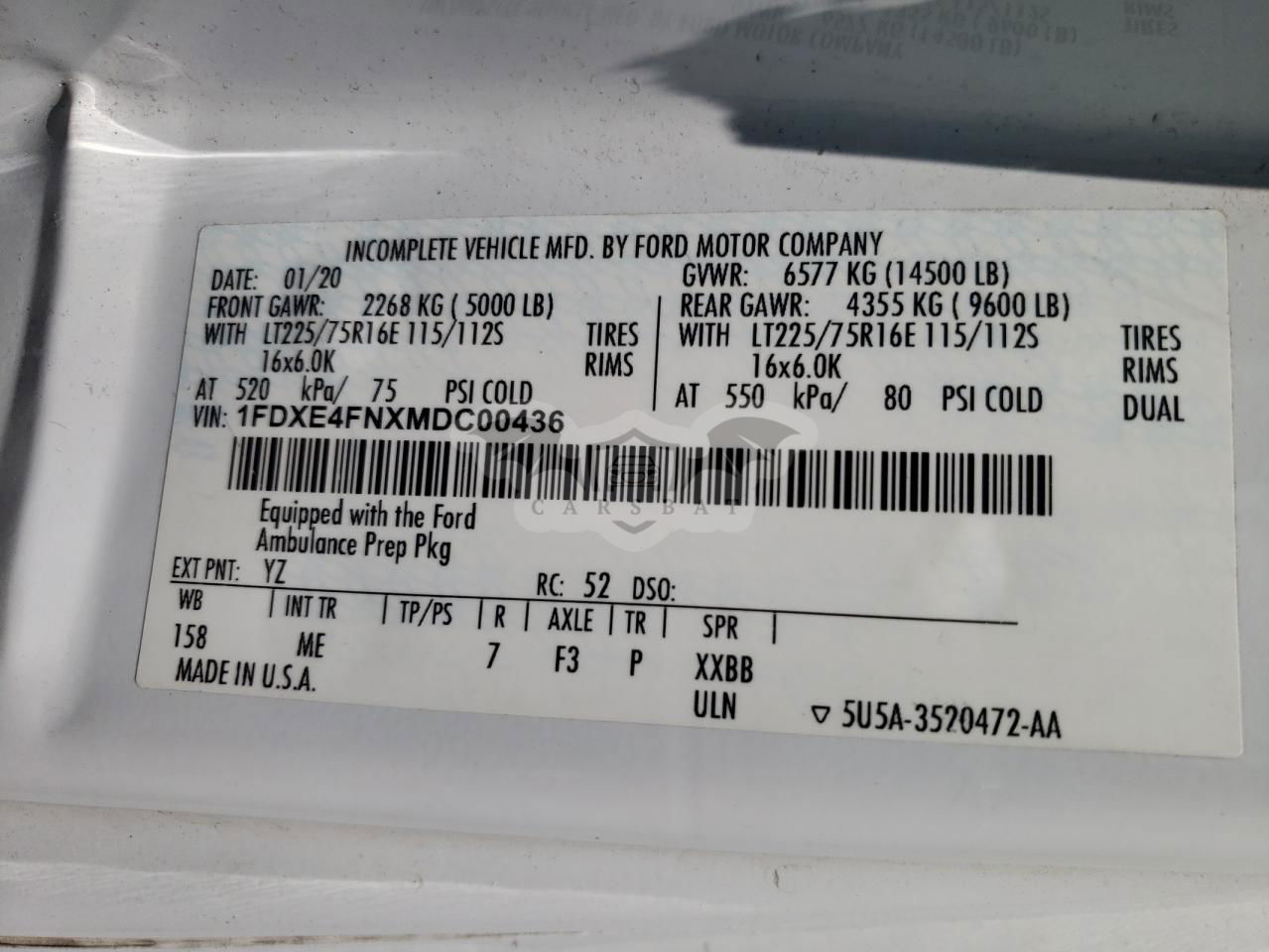 • VIN: 1FDXE4FNXMDC00436
