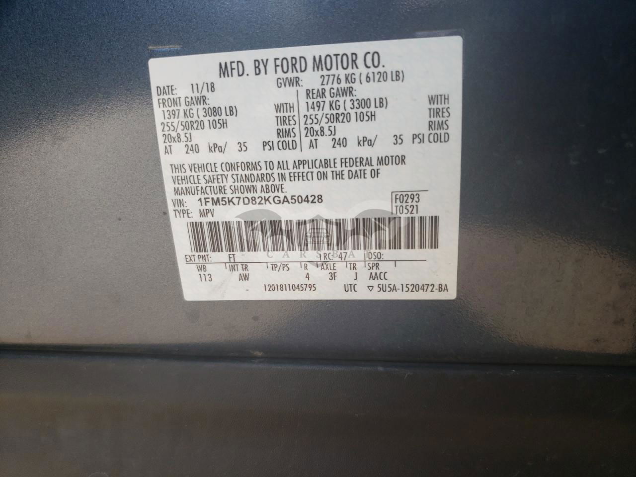 • VIN: 1FM5K7D82KGA50428