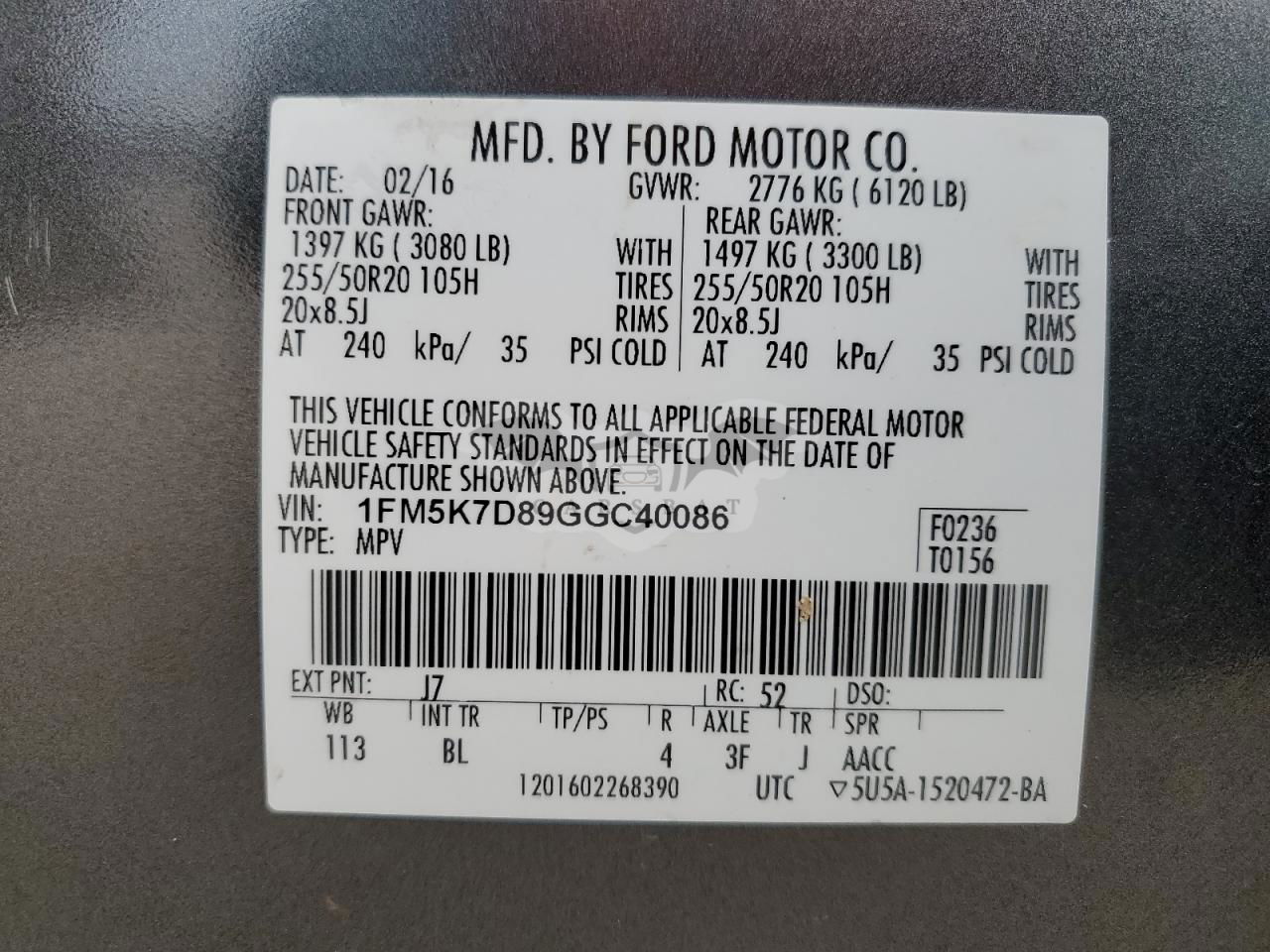 • VIN: 1FM5K7D89GGC40086