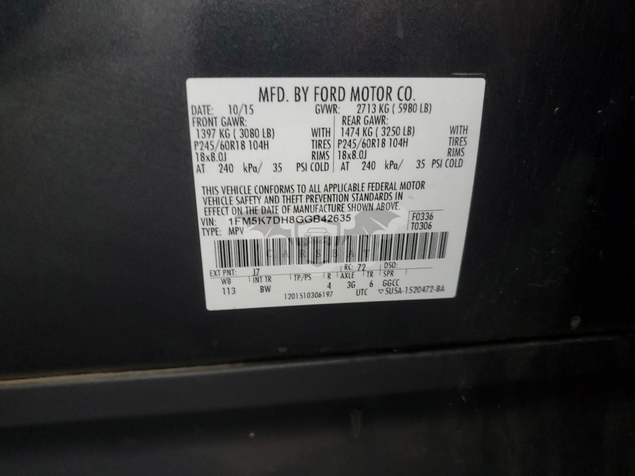 • VIN: 1FM5K7DH8GGB42635