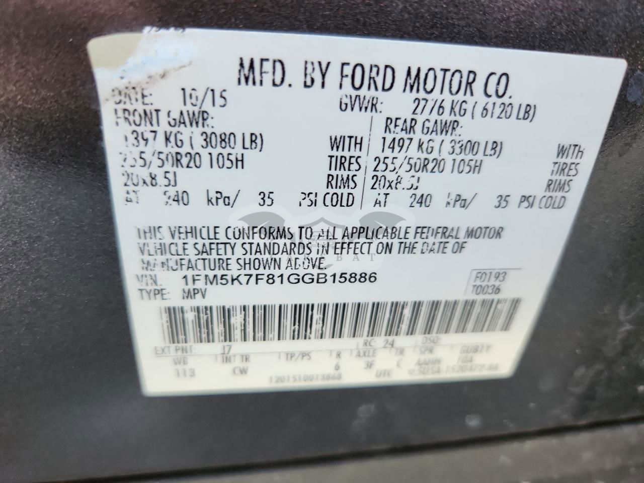 • VIN: 1FM5K7F81GGB15886