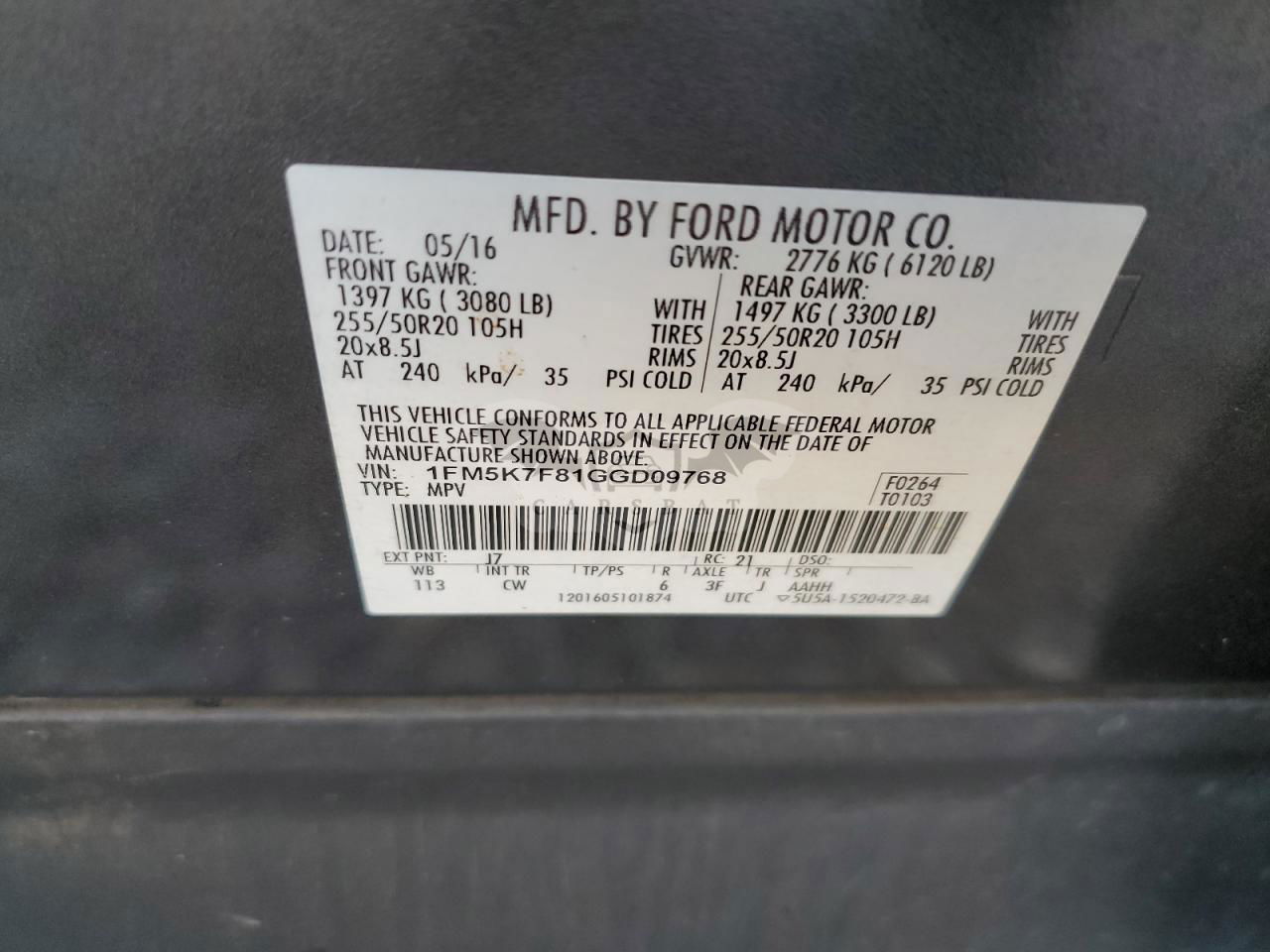 • VIN: 1FM5K7F81GGD09768