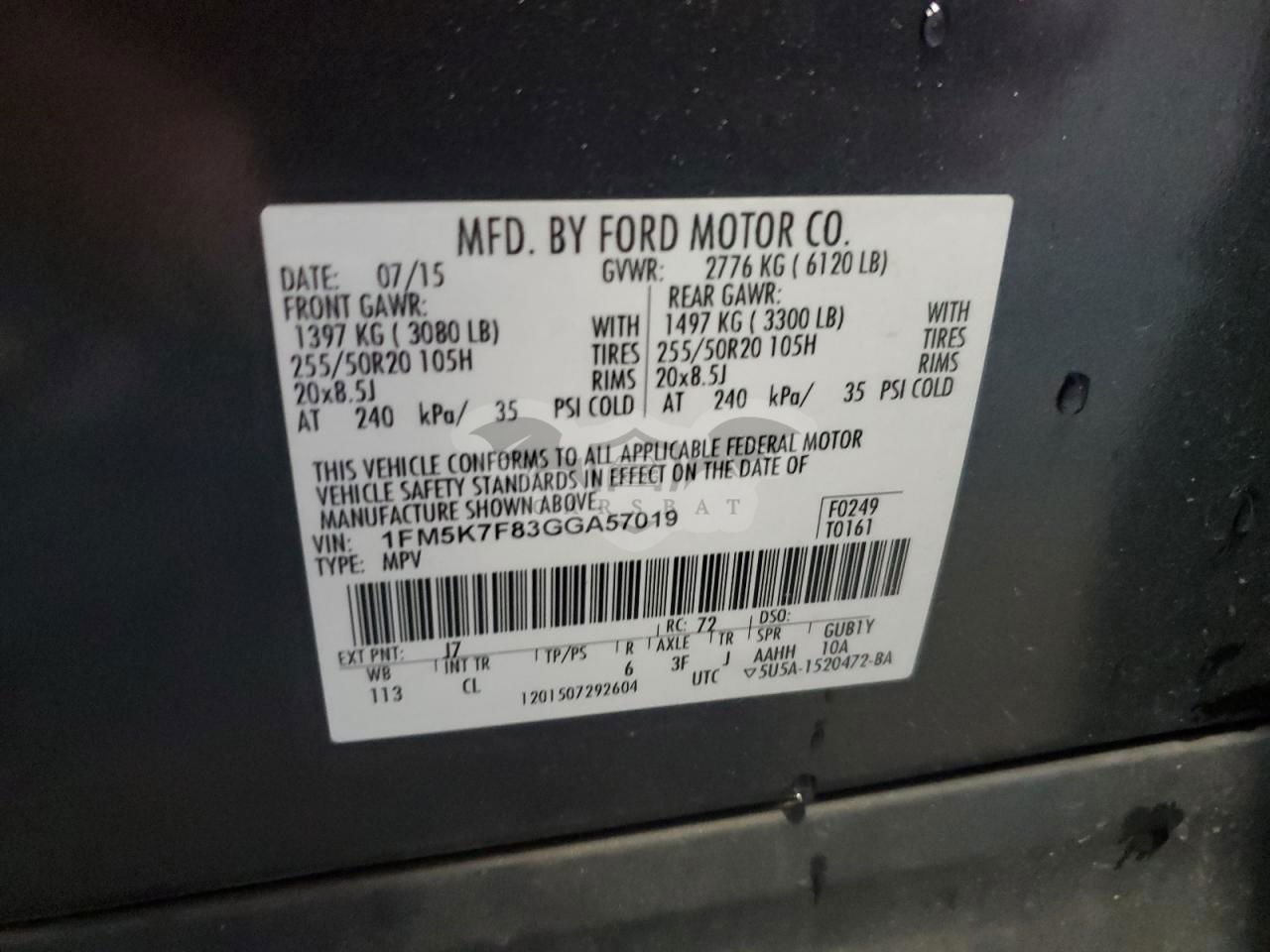 • VIN: 1FM5K7F83GGA57019