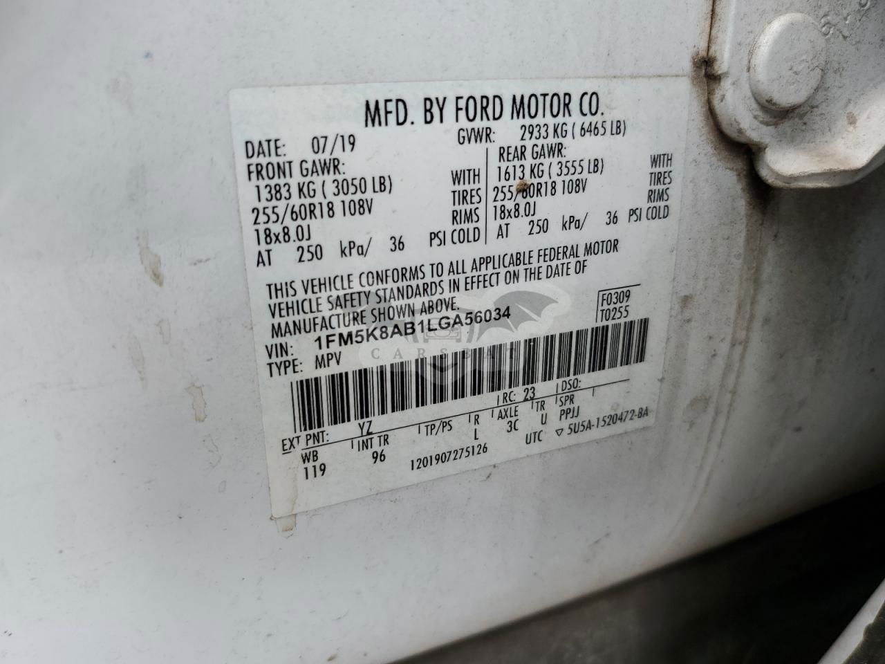 • VIN: 1FM5K8AB1LGA56034