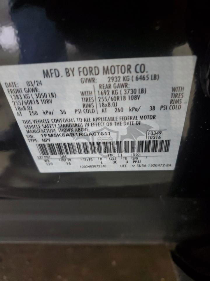 • VIN: 1FM5K8AB1RGA67611
