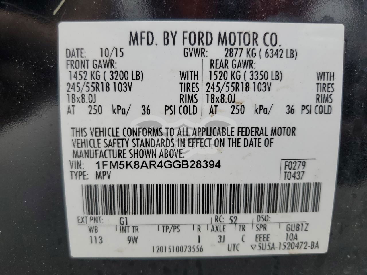 • VIN: 1FM5K8AR4GGB28394