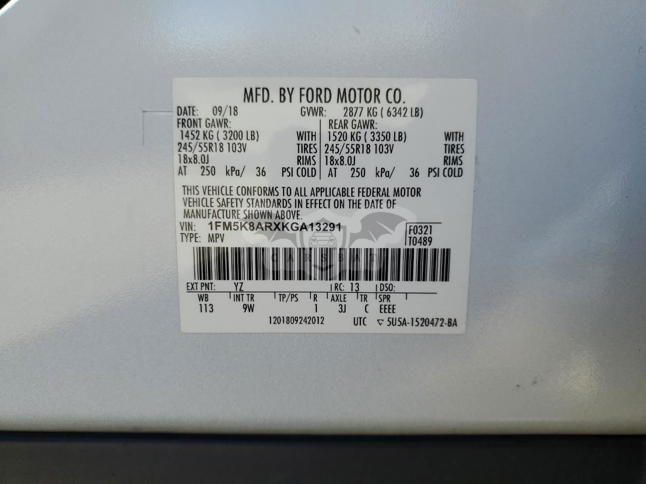 • VIN: 1FM5K8ARXKGA13291