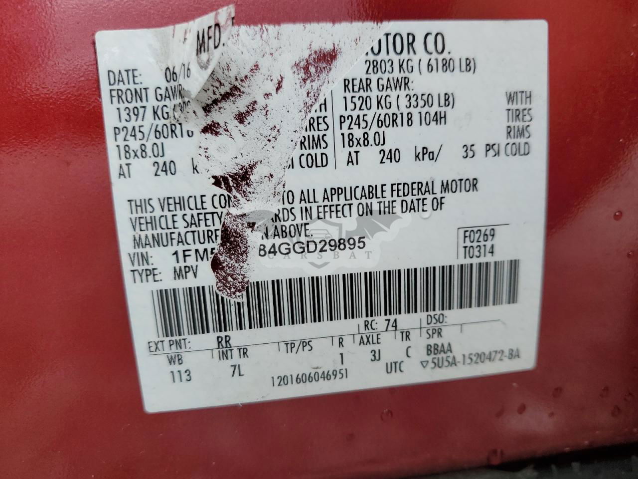 • VIN: 1FM5K8B84GGD29895
