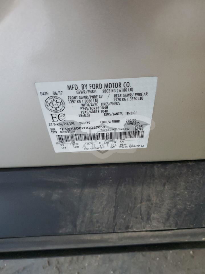 • VIN: 1FM5K8D82HGD27058