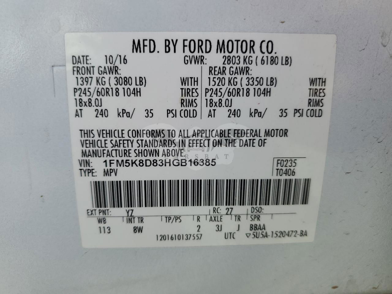 • VIN: 1FM5K8D83HGB16385