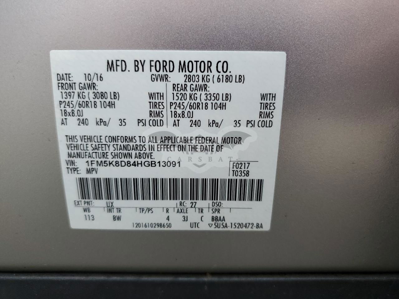 • VIN: 1FM5K8D84HGB13091