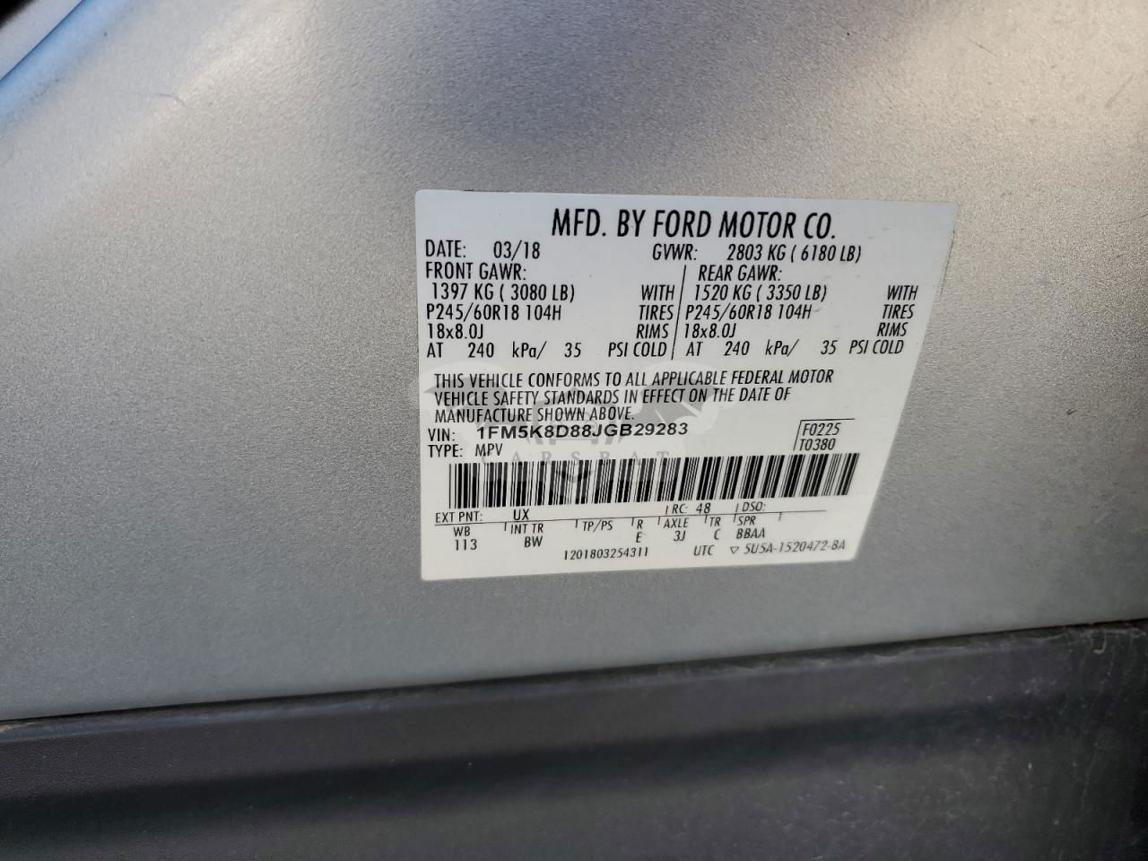 • VIN: 1FM5K8D88JGB29283