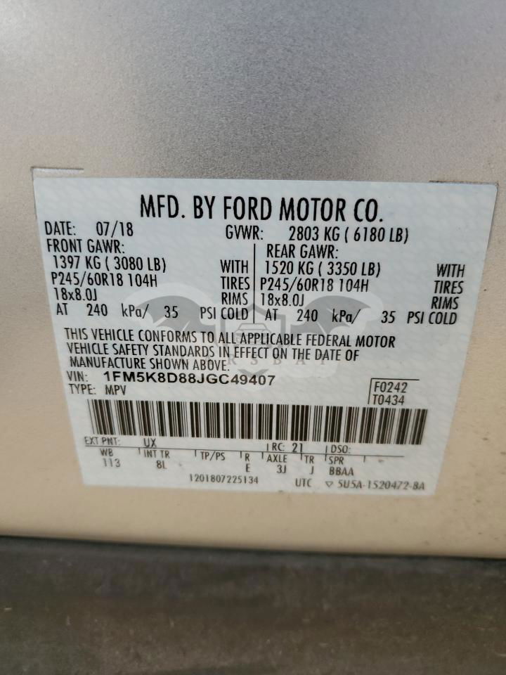 • VIN: 1FM5K8D88JGC49407