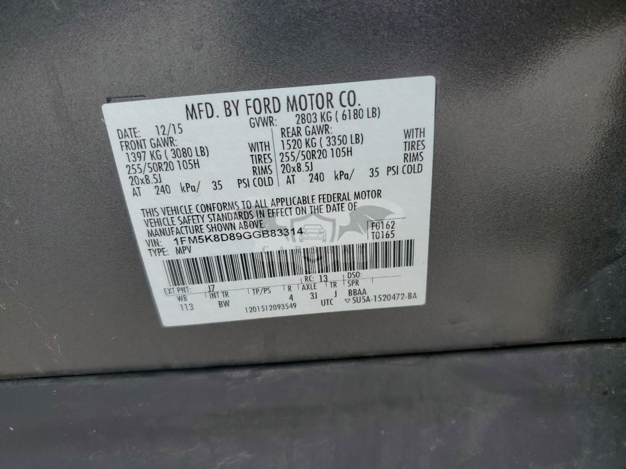 • VIN: 1FM5K8D89GGB83314