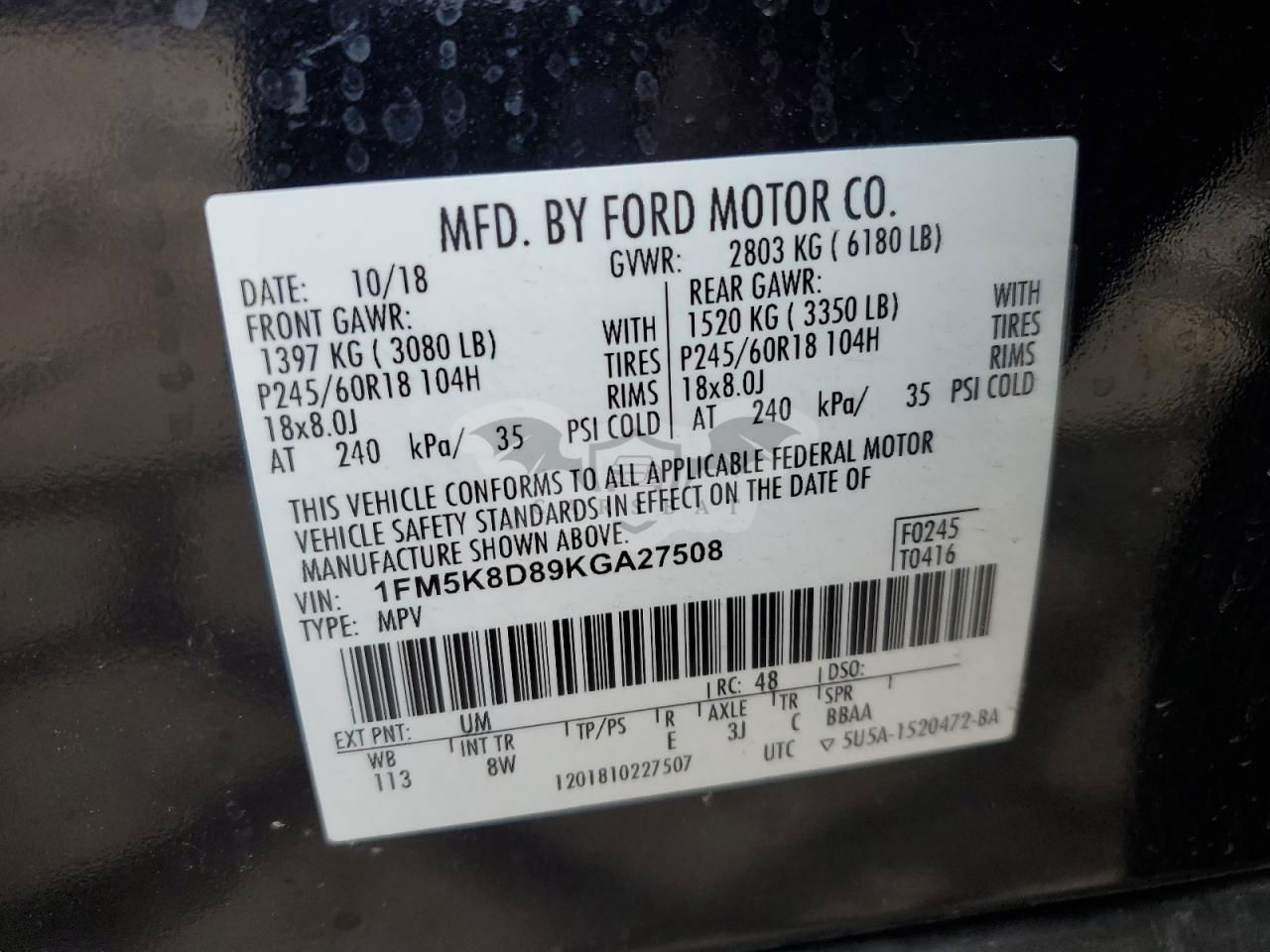 • VIN: 1FM5K8D89KGA27508