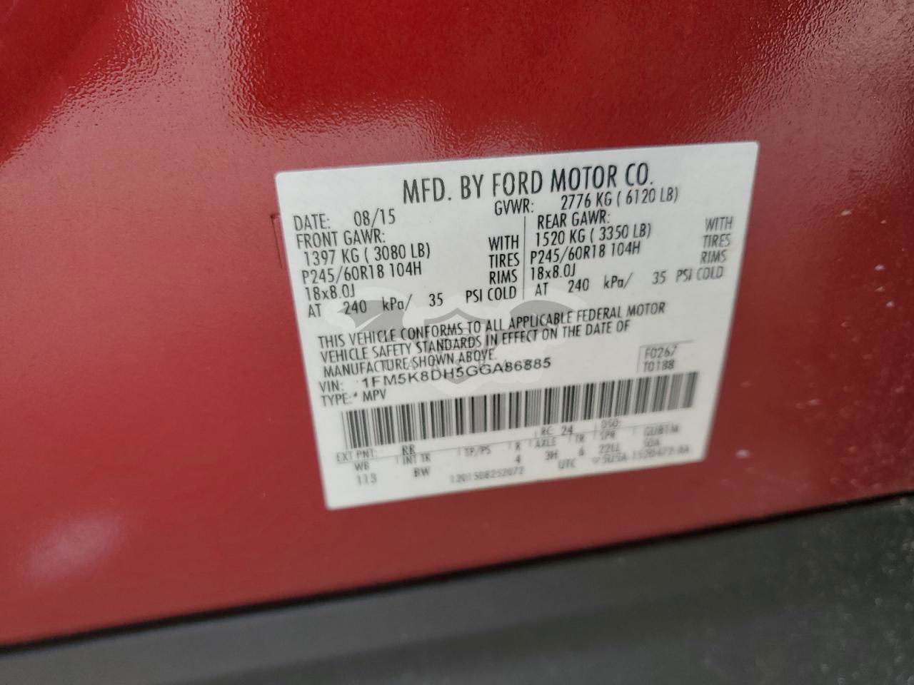 • VIN: 1FM5K8DH5GGA86885