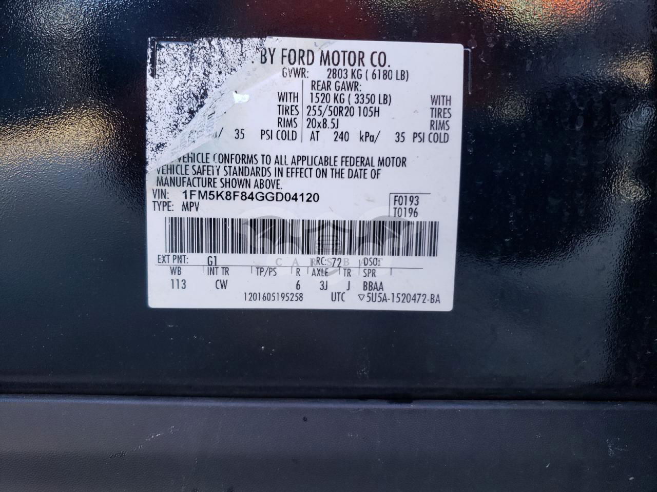 • VIN: 1FM5K8F84GGD04120