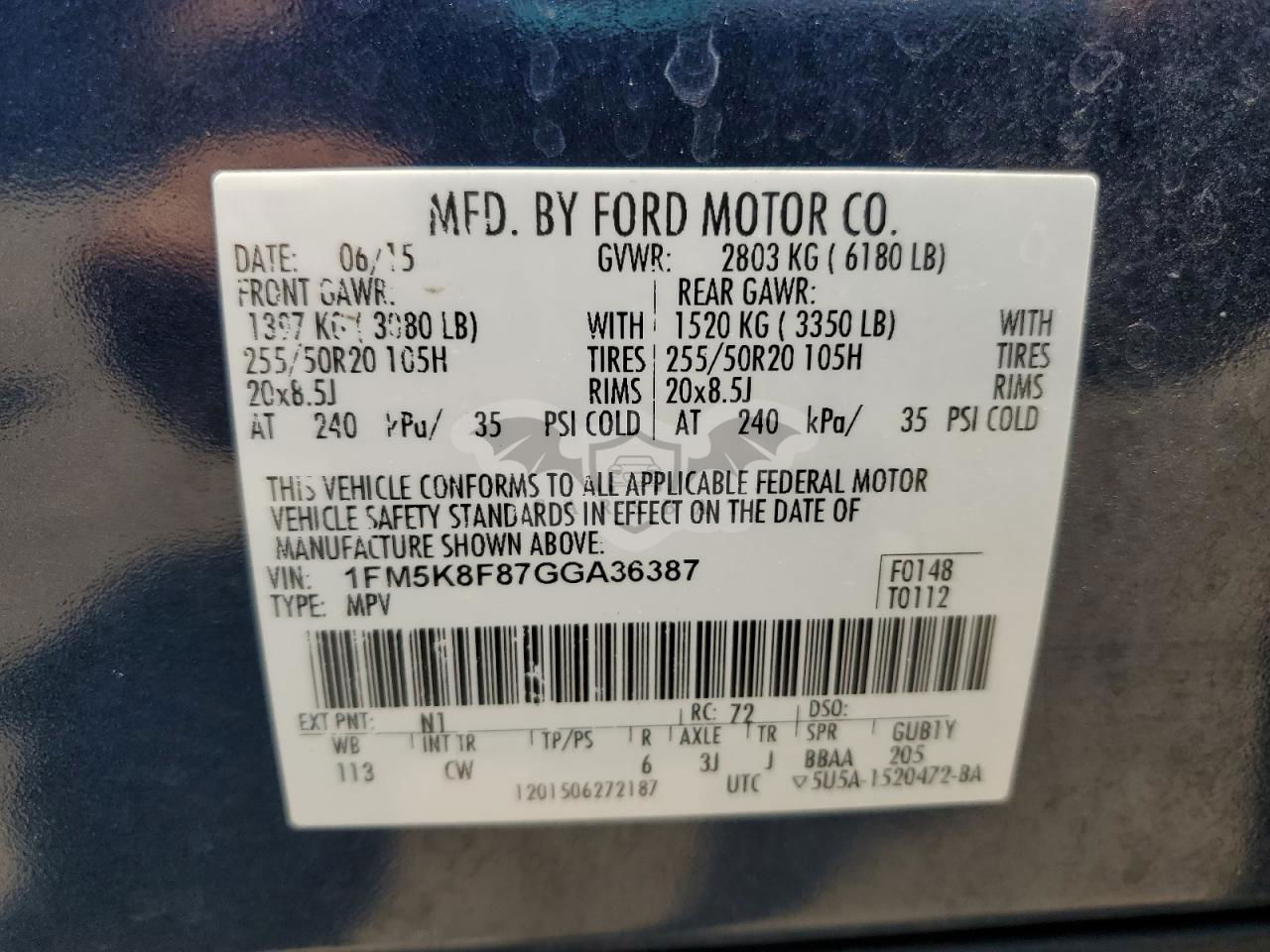 • VIN: 1FM5K8F87GGA36387