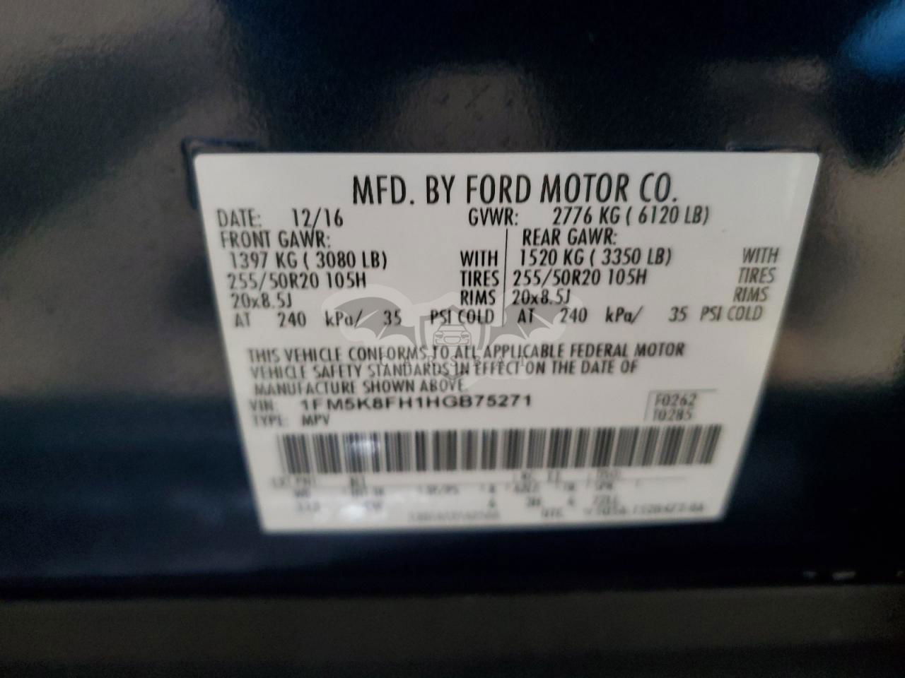 • VIN: 1FM5K8FH1HGB75271