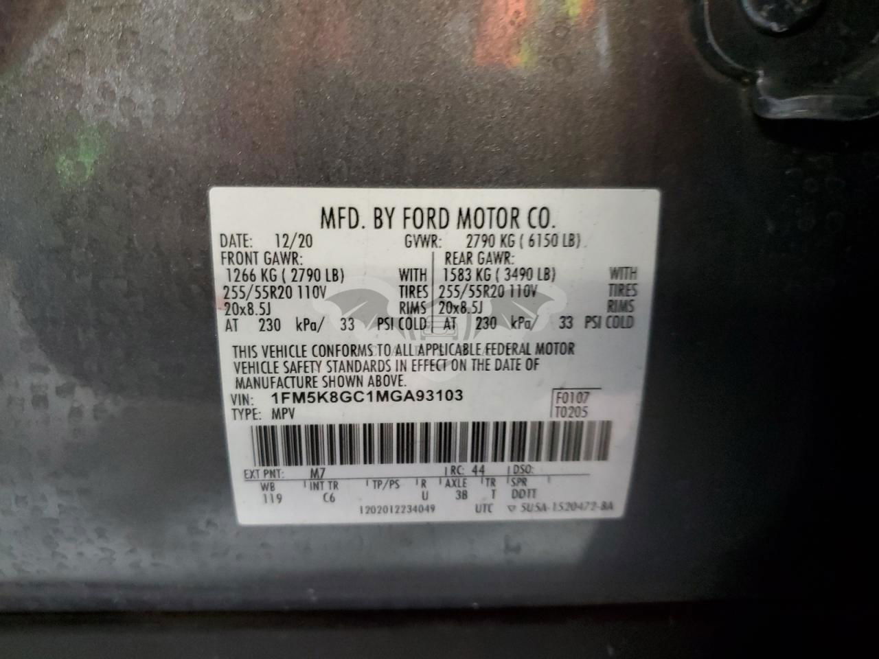 • VIN: 1FM5K8GC1MGA93103
