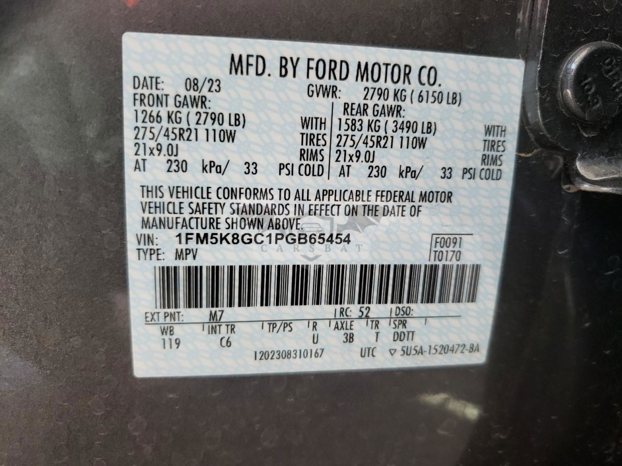 • VIN: 1FM5K8GC1PGB65454