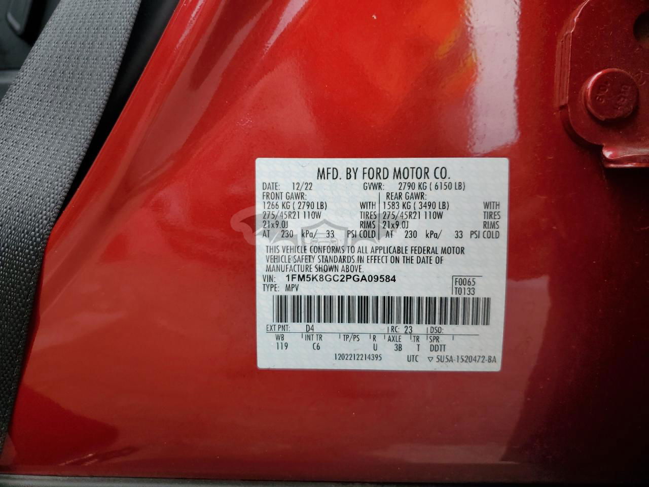 • VIN: 1FM5K8GC2PGA09584