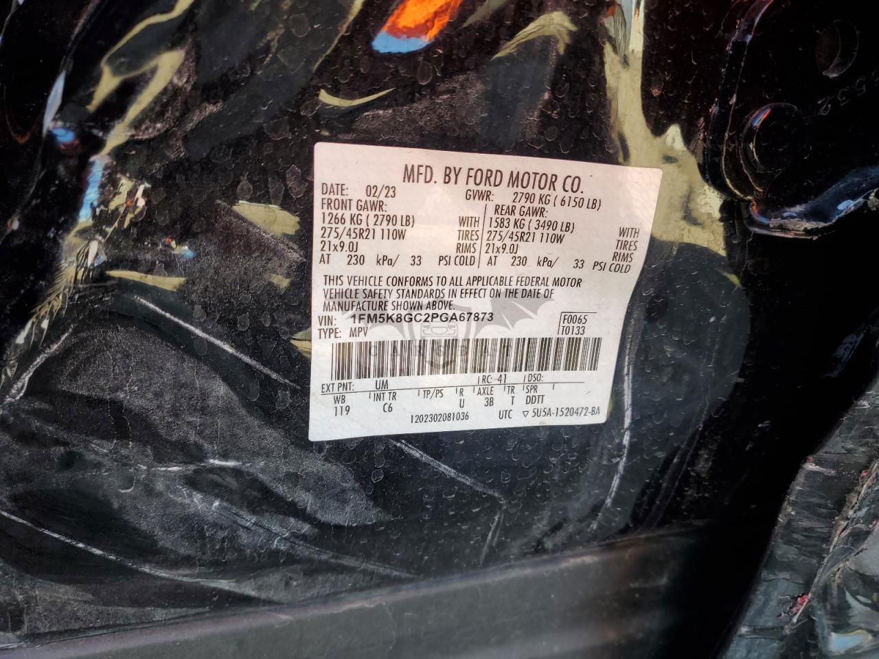 • VIN: 1FM5K8GC2PGA67873