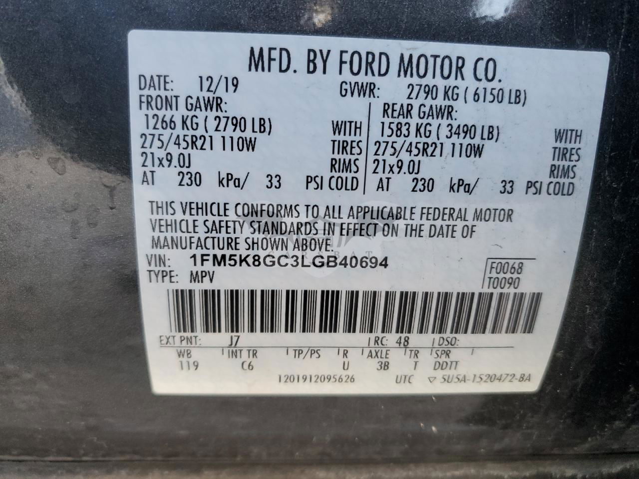 • VIN: 1FM5K8GC3LGB40694