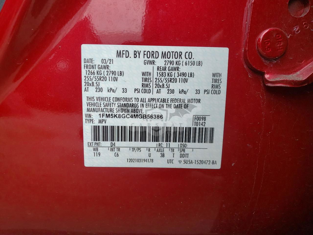 • VIN: 1FM5K8GC4MGB56386
