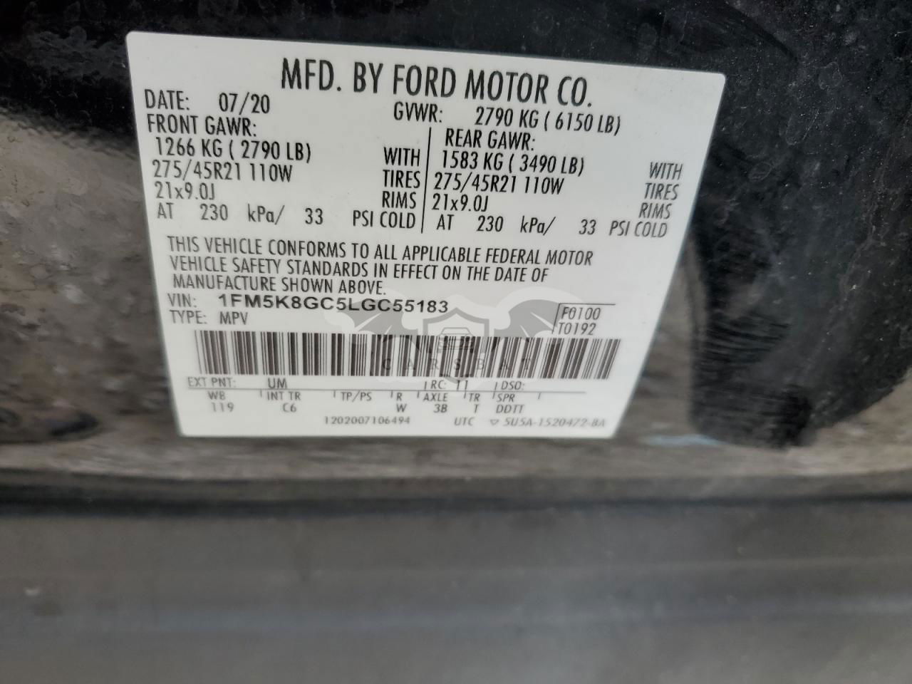 • VIN: 1FM5K8GC5LGC55183