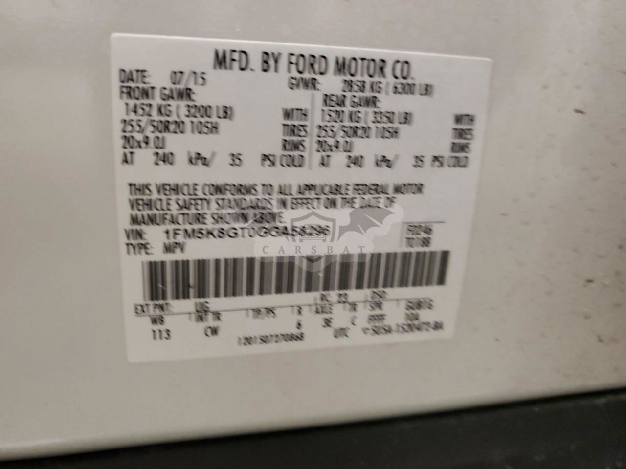 • VIN: 1FM5K8GT0GGA58296