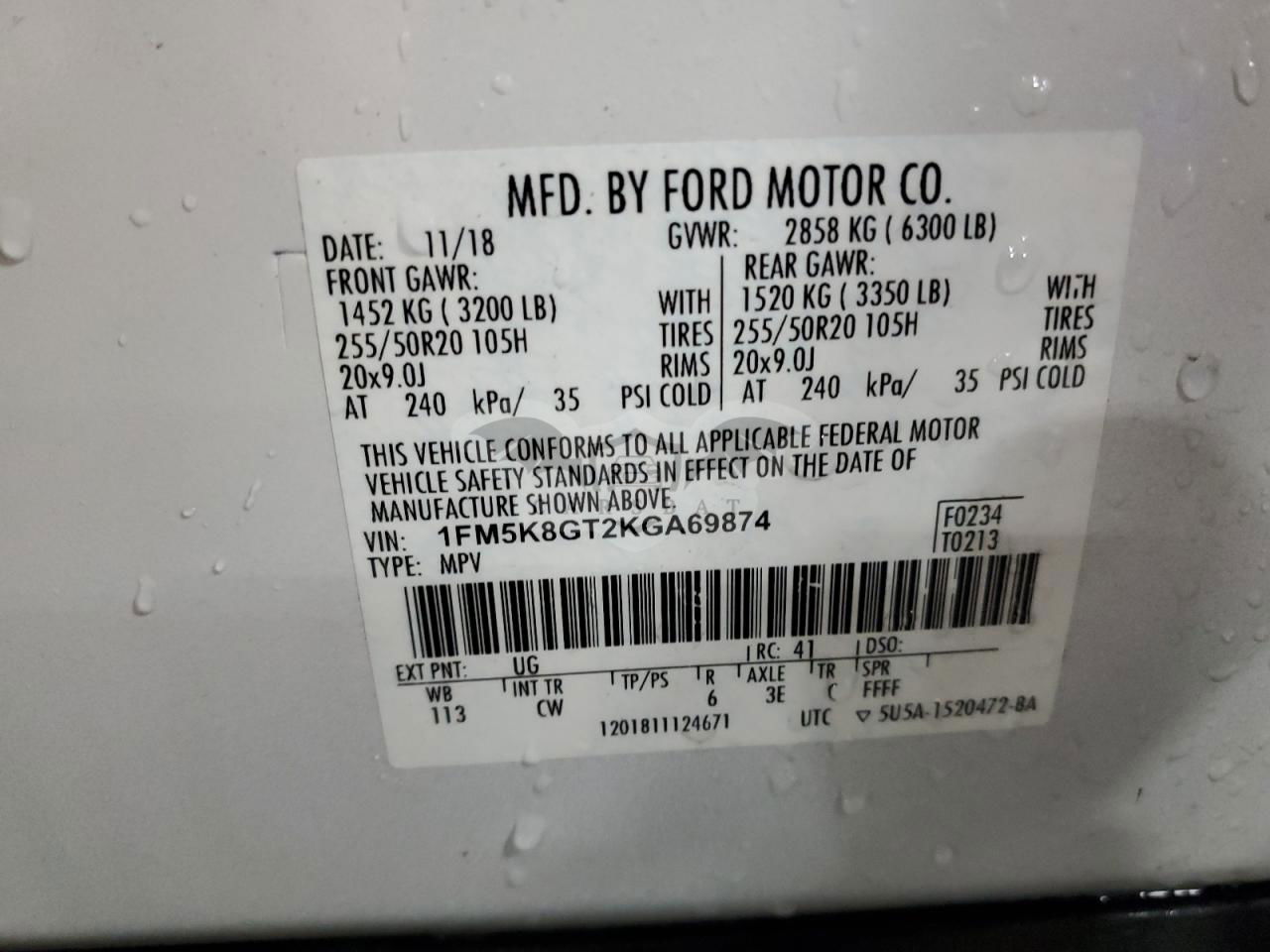 • VIN: 1FM5K8GT2KGA69874