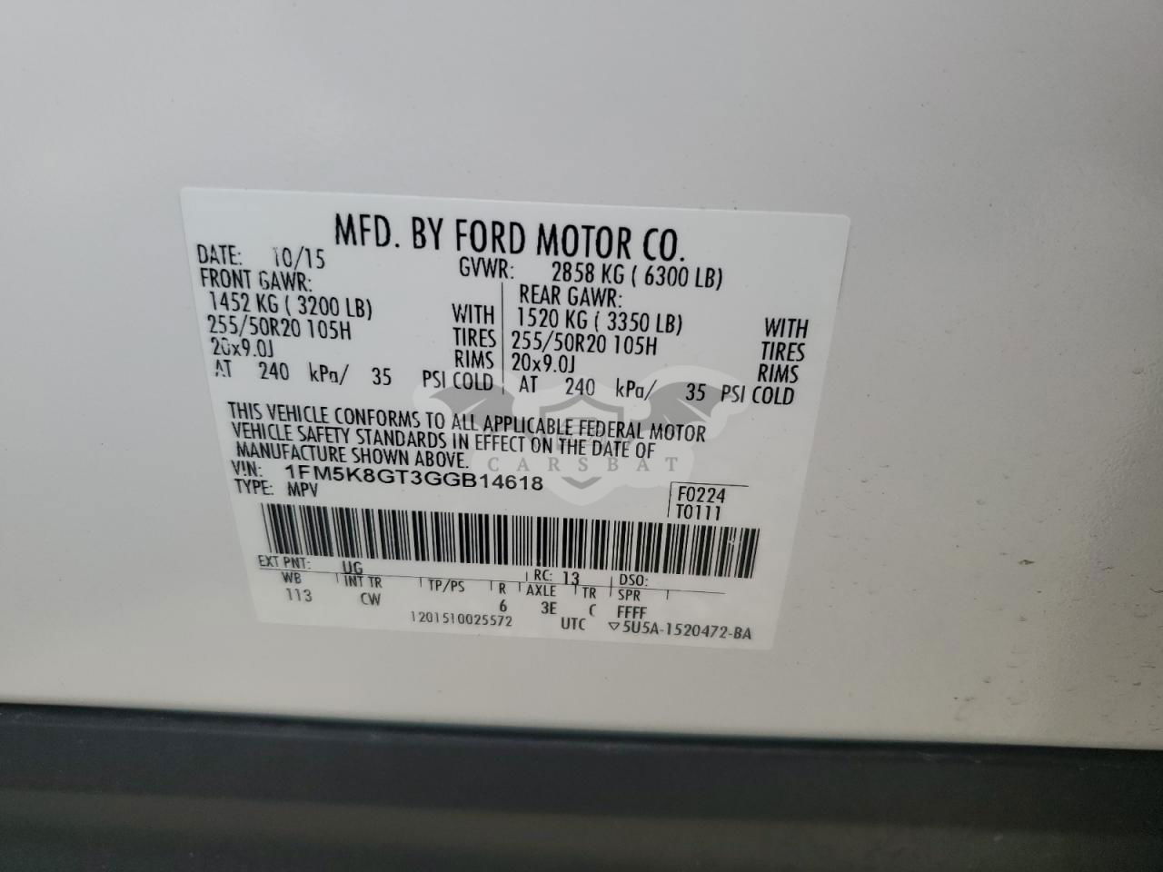 • VIN: 1FM5K8GT3GGB14618