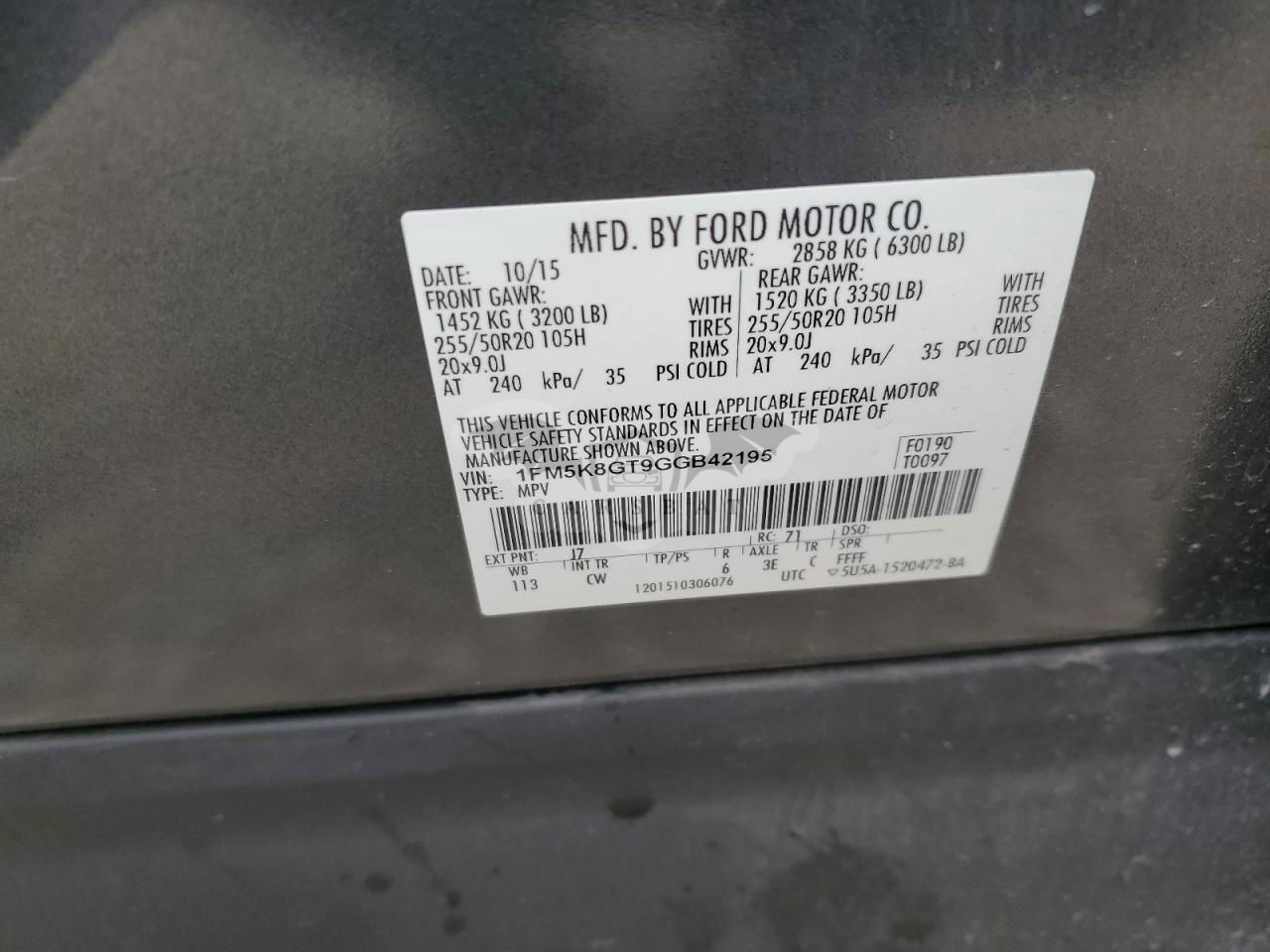• VIN: 1FM5K8GT9GGB42195